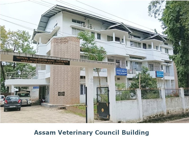 - The Assam Veterinary Council has its own G+2 RCC building at the Veterinary Directorate campus at Chenikuthi, Guwahati-781003. The Council office and conference hall at the Ground Floor, the first floor and second floor are the Guest House to provide in house facility to a batch of 20 (twenty) nos. of trainees at a time including a VIP suit, Kitchen & dining etc. Other than trainees the veterinarians of the state and outside state are also allowed to accommodate at a minimum rental charges.